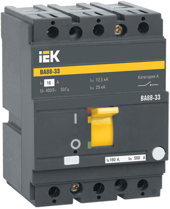 Автоматические выключатели ВА88 предназначены для проведения тока в нормальном режиме и отключения тока при коротких замыканиях, перегрузке, недопустимых снижениях напряжения, а также для оперативных включений и отключений участков электрических цепей и рассчитаны для эксплуатации в электроустановках с номинальным рабочим напряжением до 400 В и на номинальные токи от 12,5 до 1600 А.