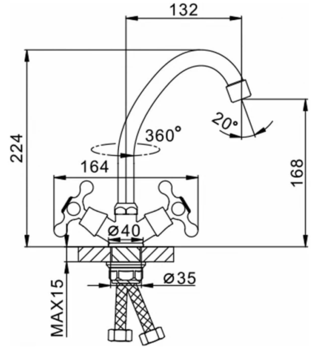 Высота излива - 168 мм