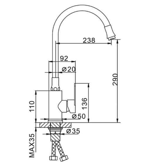 Высота излива - 29см
