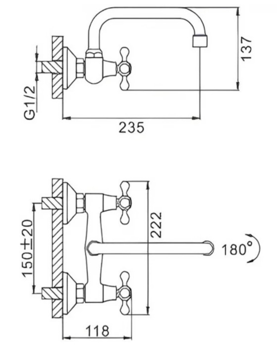 Длина излива - 235 мм
