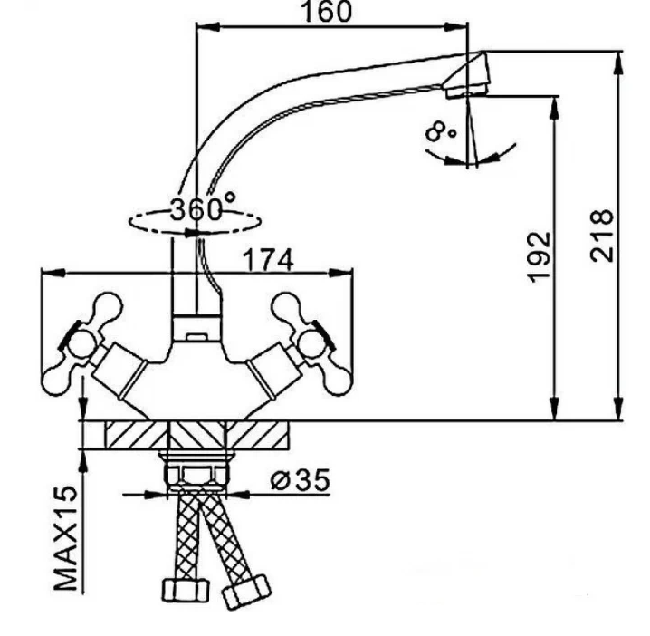 Высота излива - 192 мм