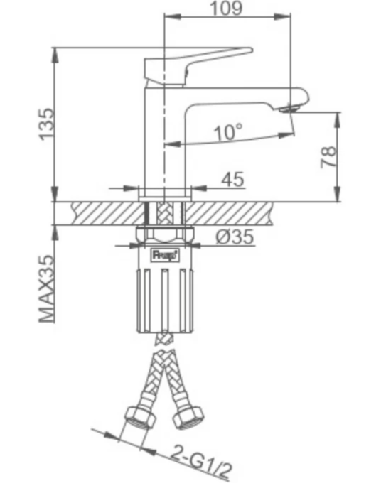 Длина излива - 10.9 см