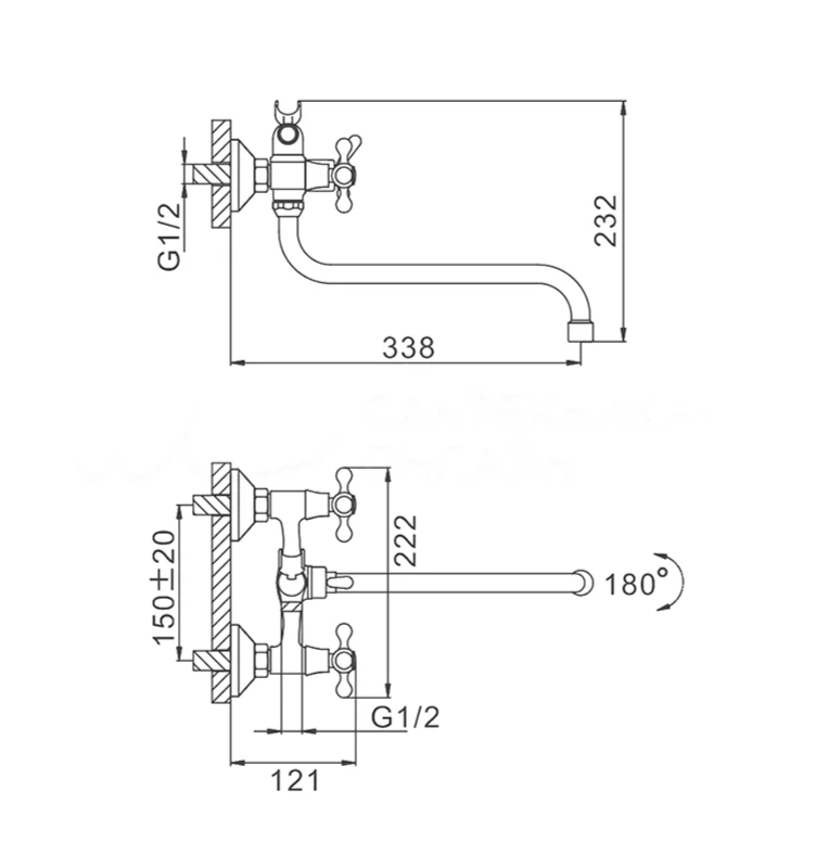 Длина излива - 338 мм