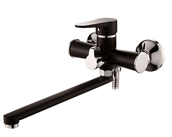 Размеры - 14 × 41,5 × 11 смЦвет - ЧёрныйЦвет - ХромированныйТип управления - РычажныйТип смесителя - ПоворотныйТип излива - Длинный