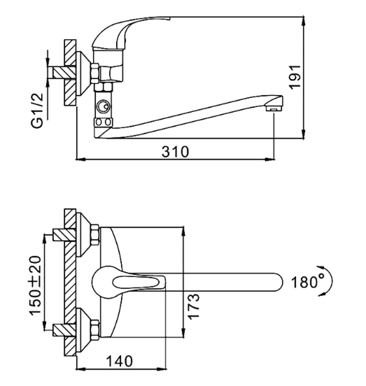 Комплектация - держатель лейки, душевая лейка, душевой шланг, смеситель