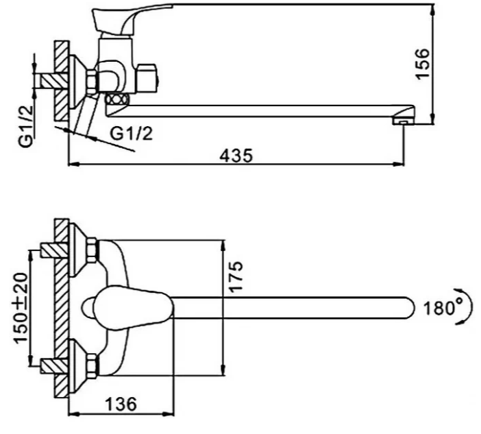 Длина излива - 435 мм