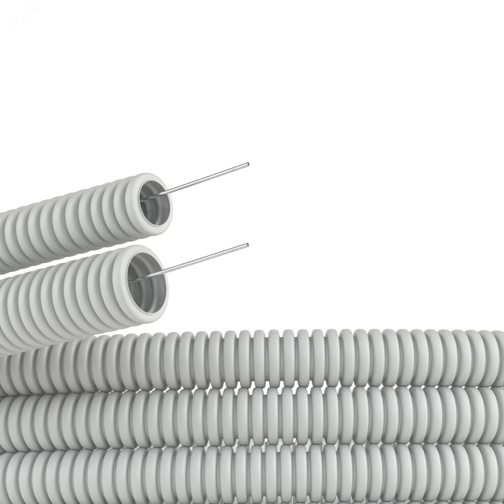 Труба гофрированная ПВХ 25 мм с протяжкой легкая серая DKC
