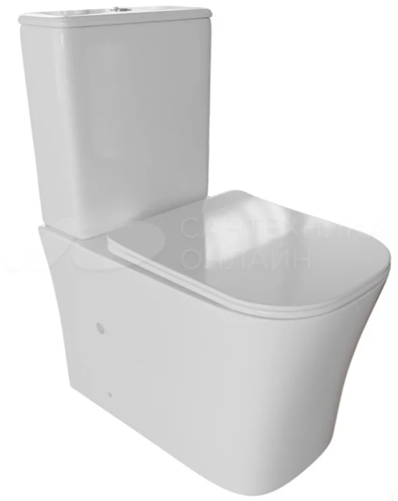 Унитаз-компакт WAVE PROMO безободковый гориз. нижн. 2-кн. арм. сид. дюро белый глянец
