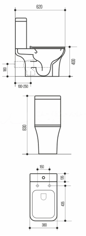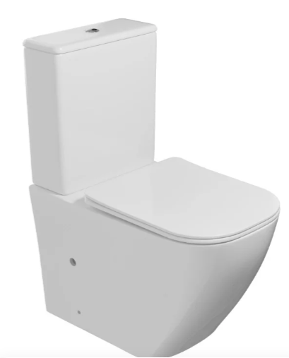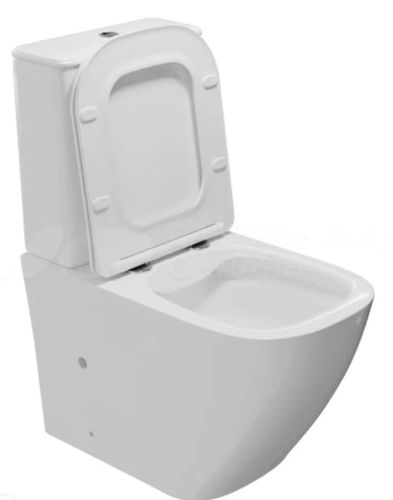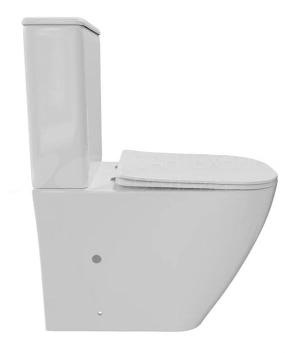 Унитаз-компакт WAVE QUADRO безободковый, гориз, нижн, 2кн арм, сид. дюропласт Белый глянец