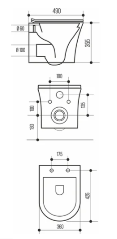 Глубина унитаза - 490 мм
