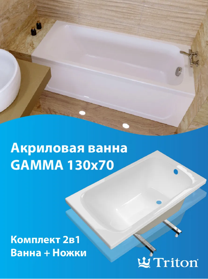 Строгая и лаконичная форма ванны Gamma 130 отвечает духу времени и идеально вписывается в ванную комнату практически любого дизайна. Ударопрочная ванна выполнена в стандартном размере из гипоаллергенного материала. Поверхность ванны идеально белого цвета, без посторонних вкраплений. Вода в такую ванну набирается практически бесшумно и долго не остывает. Эргономичная спинка помогает полностью расслабиться. Ванна Gamma 130 прочна, долговечна и предельно проста в уходе. Ванна поставляется в комплекте с установочным комплектом (ножки). Ванны Triton – это результат более чем 20-летнего опыта и экспертизы российского производителя акриловых ванн Triton. Эстетичные и практичные ванны Triton созданы для вашего комфорта!