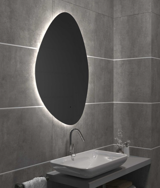 Ассиметричная модель, обтекаемая форма в горизонтальном и вертикальном положениях выглядит совершенно по-разному. Нестандартные очертания подчёркивает подсветка, создающая эффект «парения». Дизайн зеркала и опция смены температуры света, позволяющая выбрать один из 3-х режимов свечения (тёплый, нейтральный, холодный), помогут сделать интерьер уютным и живым, добавить ему обаятельных ноток несовершенства. Функция диммера предназначена для плавного регулирования яркости, функция памяти — для запоминания последней настройки яркости.